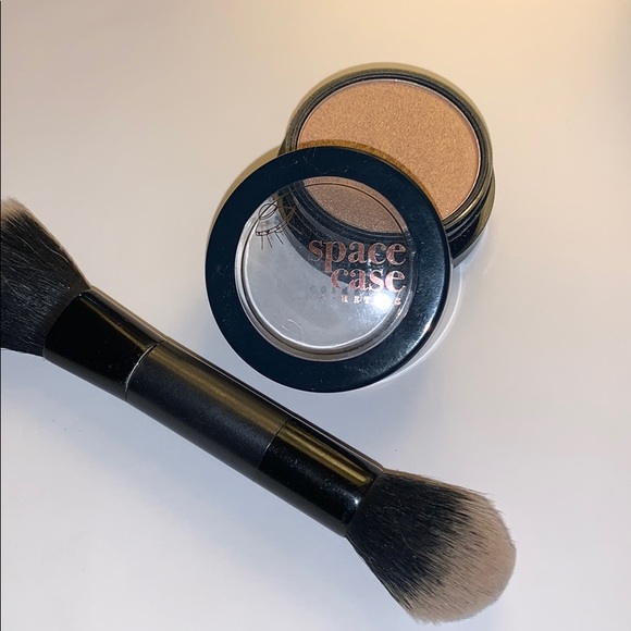 This highlighter is from space case cosmetics the name is seen from space one Dash me it’s a baked highlighter and I’m including a brush that is new