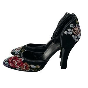 Highlights Shoes Size 9.5 Floral Embroidered Pointed Toe Ankle Strap Heels