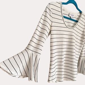 Highline Collective Madewell Bell Sleeve Striped Knit Top Blouse White Black S