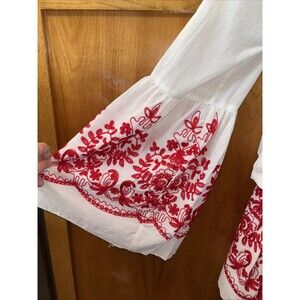 Highness Embroidered Floral Dress Red White Boho Peasant Bell Sleeve 2X NEW