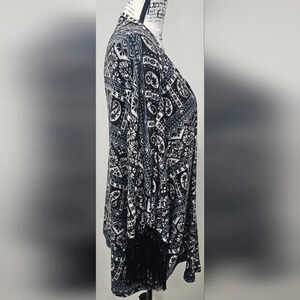 Highness Women's Paisley Boho Open Front Fringe Kimono Cardigan One Size NWT