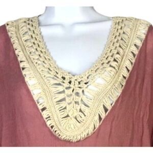 Highness Boho Crochet Detail Cover Up Top Short Kaftan