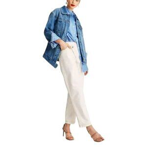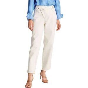 Description Upgrade your jeans collection with something unique and stylish with these High-Rise Overlap Waist Tapered Leg Jeans from Future Collective With Kahlana Barfield Brown . Made from a cotton-recycled cotton blend, these jeans are straight with a casual fit and a 28-inch inseam. The overlapping, asymmetrical fly button and zipper closure takes these jeans to the next level. Future Collective with Kahlana Barfield Brown - Meet style seeker and trendsetter, Kahlana. Through her ever-evolving storytelling and unwavering passion for fashion, she’s empowering a whole new community to express beauty from within by what they wear.