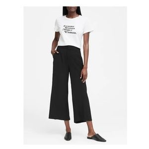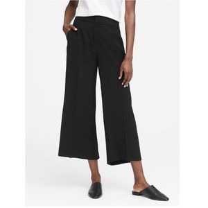 High-rise, wide-leg pant, cropped length. Zip fly with hook-and-bar closure. Front slant pockets, rear welt pockets. Inseams (Short): 23"
