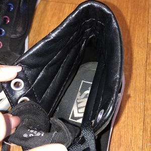 Hightop Black canvas Vans with Leather Insides & Iridescent Lace Holes Sample