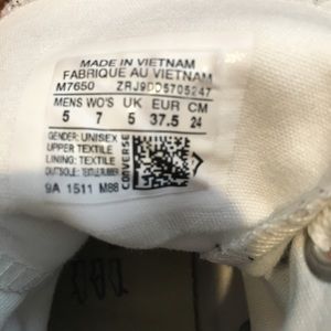 Size 5 mens white hightop converse . Not new! They are worn , make offers!