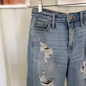 Gently worn high-waisted jeans with cute rips on the front and one in the back 😜