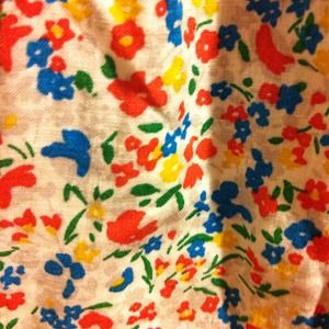 Looks brand new! Made of cotton. Beautiful colors. Only worn once! Fits true to size. Ivory colored background with nice blue orange and yellow flowers. 🌼