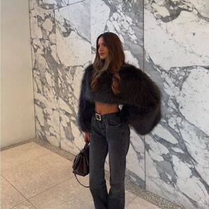 High waisted black slightly faded jeans