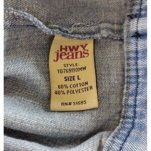 This jacket is machine washable and has pockets for added convenience. It is available in junior girls size large and fits regular size. The solid blue color and denim fabric type make it a versatile addition to any wardrobe. Don't miss out on this trendy and practical Highway Jeans denim jacket!