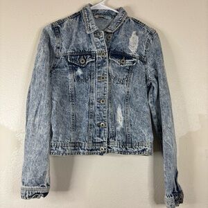 Highway Jeans Premium Denim Jacket Sz Med Distressed Acid Wash 100% Cotton Y2K