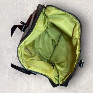 Crafted from high-quality nylon and leather, this tote bag is durable and can withstand the wear and tear of everyday use. The solid gray exterior color gives it a classic and preppy look that complements any outfit. The yellow leather lining adds a pop of color to the bag, making it easy to find your belongings. With its rectangular shape and zip closure, this bag is both functional and fashionable.