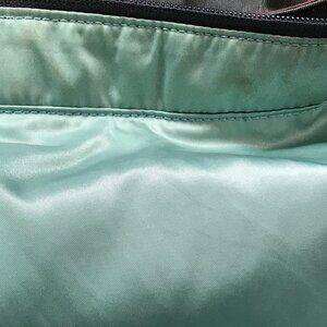 Spot on back and inner lining is stained peeling vegan leather as well(photos 5-9). See all photos for condition.