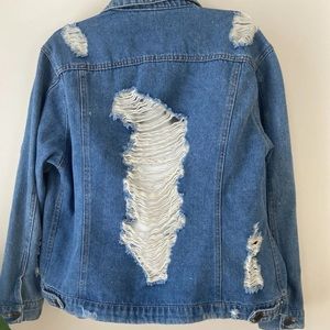 Made to look “destroyed” denim jacket medium wash denim