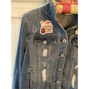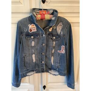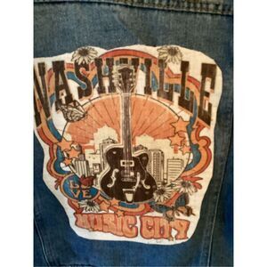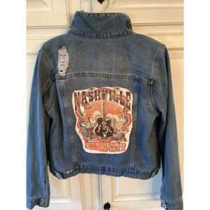 Highway Western Jean Jacket Sz L Patches Nashville Music City Distressed