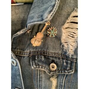 Distressed Jean Jacket western theme - patches and Grand Ole Opry and turquoise pins Nashville guitar patch on back