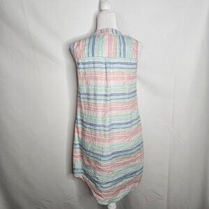 Hiho Rainbow Striped Print Small Linen Dress Sleeveless Pastel Shift Dress
