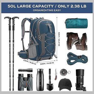 Hiking Backpack,Camping Backpack,50L Waterproof Hiking Daypack 50l Blue