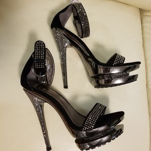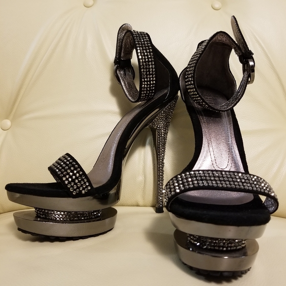 Crystal suede sandals with unique platform. Worn once.