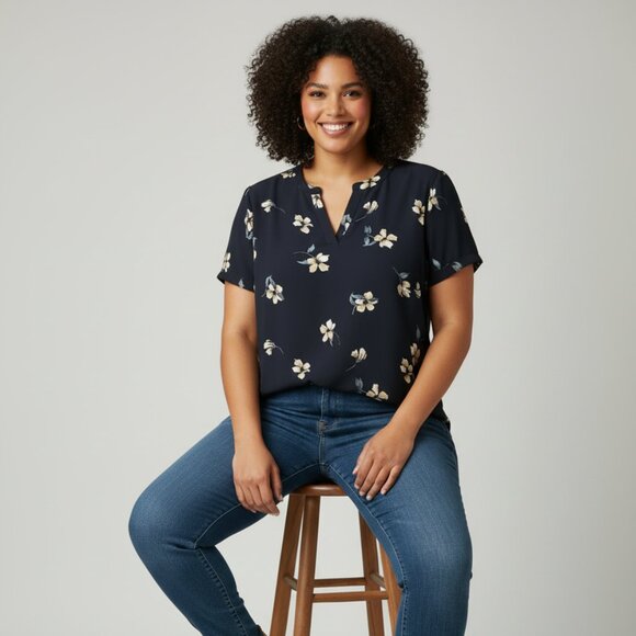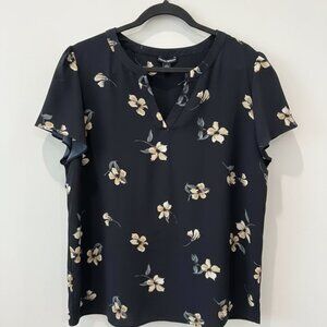 Hilary Radley Black Floral Short Sleeve Blouse – Size XL – NWT
