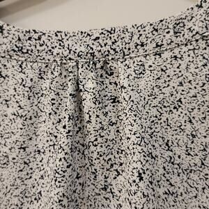 Black and white spacedye blouse with cap sleeves. Versatile top can be worn with jeans or under a blazer for the office.