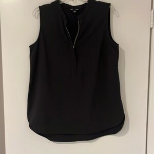 Hilary Radley Blouse Sleeveless Black Size Large 1/2 Zip front scalloped hem