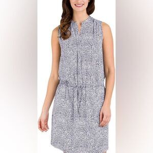 Hilary Radley Blue Leopard Print Sleeveless Dress Drawstring Waist 2
