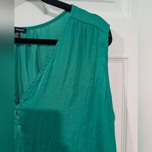 Hilary Radley Green V-Neck Sleeveless Blouse in Size XL (Extra Large)
