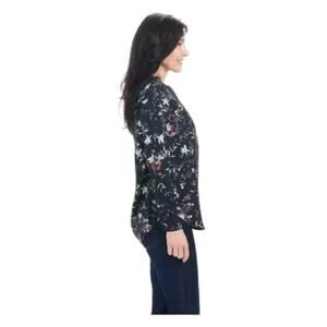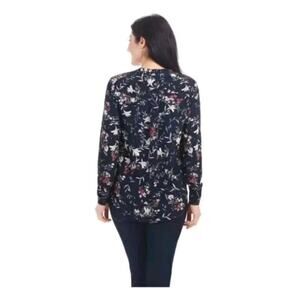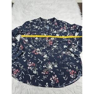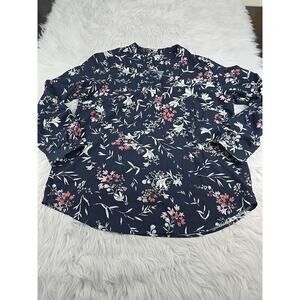 Hilary Radley Ladies Large Long Sleeve Flowy Blouse Navy Floral