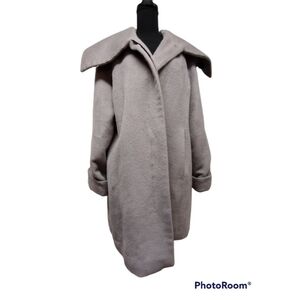 Hilary Radley New York alpaca wool blend coat. Button front. Two exterior pockets. This coat is a little lilac and a little gray. Size 16. Shawl type collar. Hidden button front. Dry clean only.