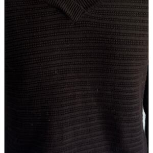 Hilary Radley Small Black Ribbed V Neck Sweater