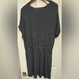 Effortlessly chic, this Hilary Radley dress features a classic navy and white stripe pattern in a flattering, easy-to-wear silhouette. Perfect for work, brunch, or summer outings.