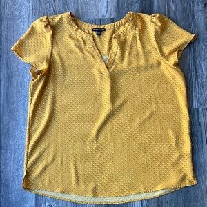 Hilary Radley Top Yellow V Neck Blouse Size Large Polka Dots Cap Sleeve Womens