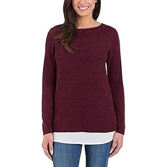Hilary Radley Womens 2fer Long Sleeve Sweater Sz XXL Burgundy Wine Ribbed Tunic