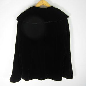 Hilary Radley Womens L Black Velvet LS Blazer Asymmetric Jacket Silk Rayon Blend