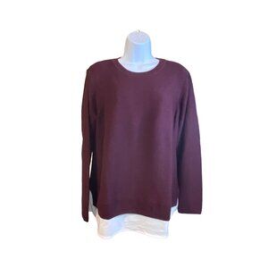Hilary Radley Womens Sweater XL Burgundy Layered White Hem Long Sleeve Preppy