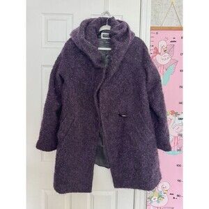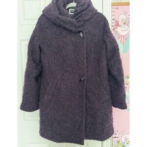 Hilary Radley Wool Mohair Dark Purple Womens Overcoat Hooded Size 8 Oversized