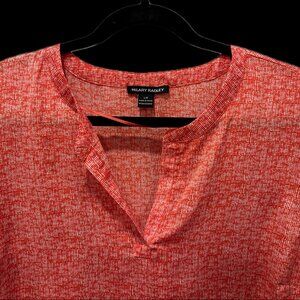 Lightly used red and white Hilary Radley V-neck blouse with cap sleeves. In excellent condition - no holes or tears. Size L, 100% polyester