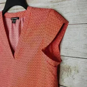 Hilary Radley women's pink and white geometric v-neck blouse size small