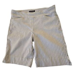 Hilary Radley Womens Pinstripe Stretch Pull-on Bermuda Shorts Blue White Medium