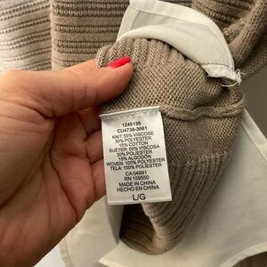 Hilary Radley Womens Tan White Long Sleeve Two-Fer Layered Sweater Large NWOT