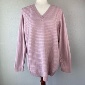 Hilary Radley Pink V-Neck Sweater Size L EUC