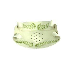This Hilborn footed ceramic berry bowl features a beautiful hand-painted leaf design. Ideal for rinsing and serving fresh berries, it adds a touch of elegance to any kitchen. Crafted by renowned Canadian ceramicist Hilborn, this piece combines functionality with artistic craftsmanship, making it a standout addition to your serveware collection.
