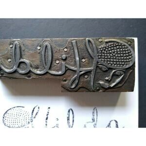 This one is a mystery as it has an image of the lady with fancy period hat with the logo Hilda. Appears to be an specialty shop for the old Atlantic City days? Vintage printers block stamp made of metal and wood. I have tested and photo also shows a ink stamp impression I made. Size is 4.25" x 1.5" approximate. Good used condition with some paper on one side. This was found in the Atlantic City, New Jersey area and most are from old businesses in Atlantic City, Atlantic County, or the southern NJ area.