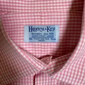 Hilditch & Key London Pink Gingham Button Down Shirt 16.5 42cm