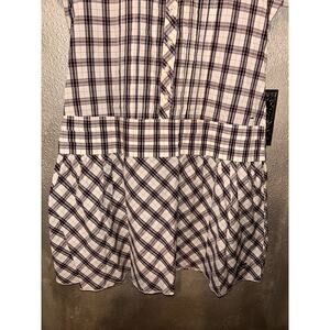 Hilfiger Denim Preppy Studious Black White Plaid Short Sleeves Drop Waist Dress