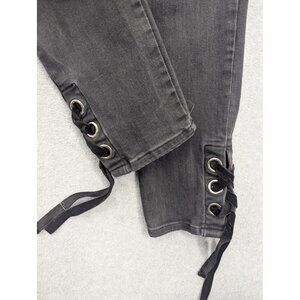 Hilfiger Jeans Tribeca Skinny Crop Jeans Womens 8 Black Lace Up Hem Stretch