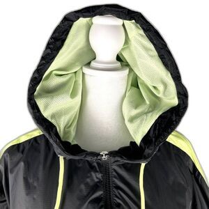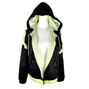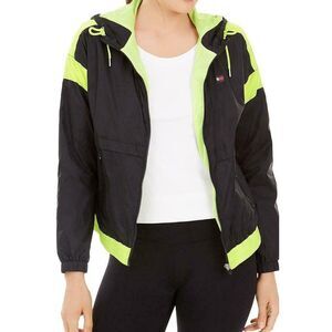 Hilfiger Windbreaker Lined Wm Sz M Navy Blue & Neon Yellow Accents Soft Fabric