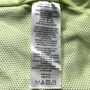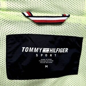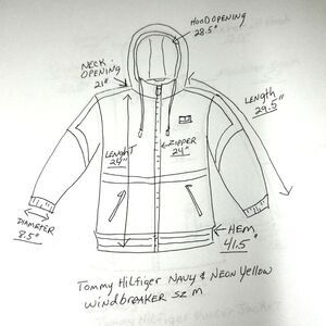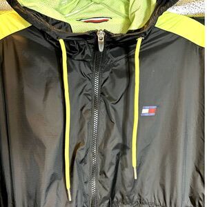 Hilfiger Windbreaker Lined Wm Sz M Navy Blue & Neon Yellow Super Soft Ripstop Polyester Fabric. Preowned new condition, no tears, stains, ripped seams, zippers fully functional. Garment has been cleaned. Easy care, machine washable.