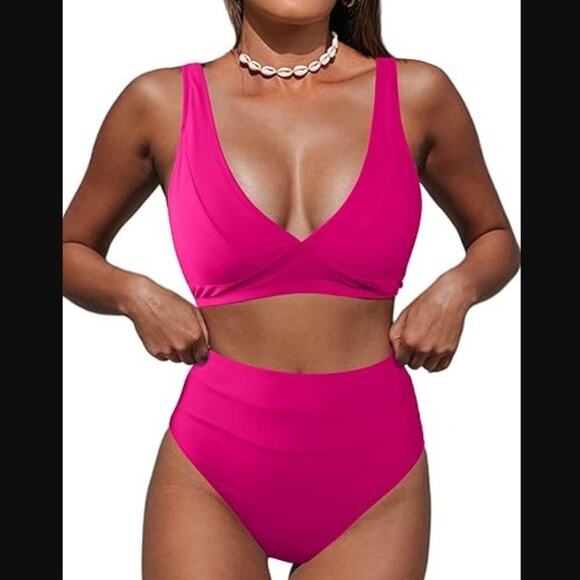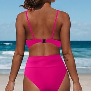 Hilinker Brand Women's Large NWOT Pink V Neck High Waisted Bikini Swimsuit